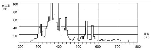 高壓汞燈可以產生輻射強烈的 310nm 、365nm、410nm 等波長的特征紫外光(UV)、可見光